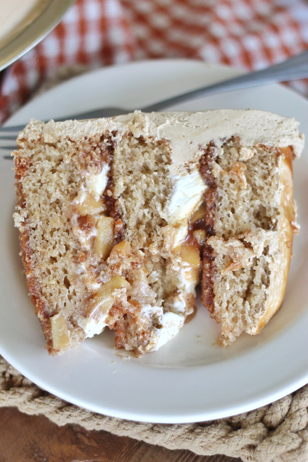Caramel Apple Cheesecake Cake with Biscoff Crust